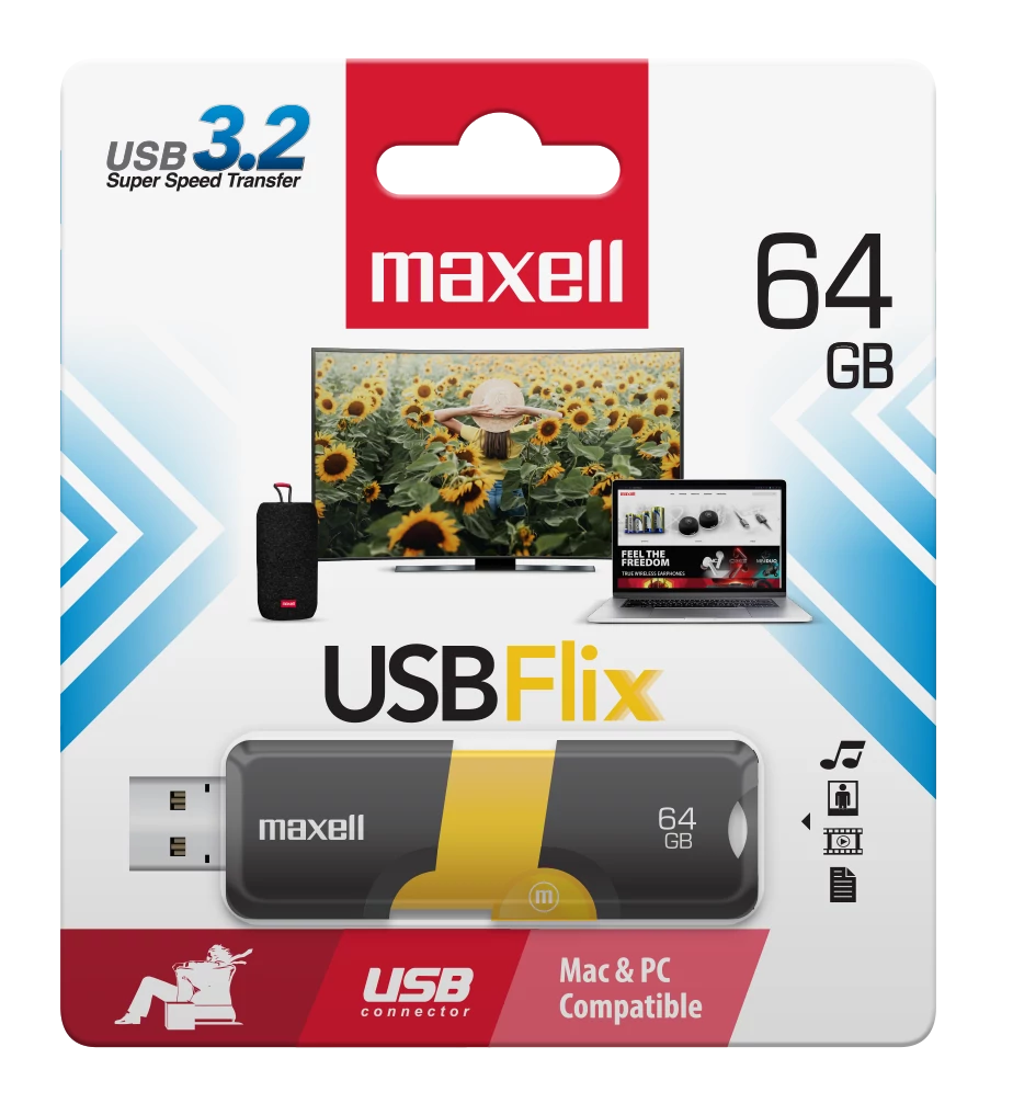 A Maxell FLIX pendrive tökéletes megoldást kínál a mindennapi adattárolási igényekhez. A 64GB kapacitás bőséges helyet biztosít dokumentumok, képek, videók és egyéb fájlok tárolására, míg az USB 3.2 interfész gyors adatátvitelt tesz lehetővé akár 130 MB/s olvasási sebességgel.