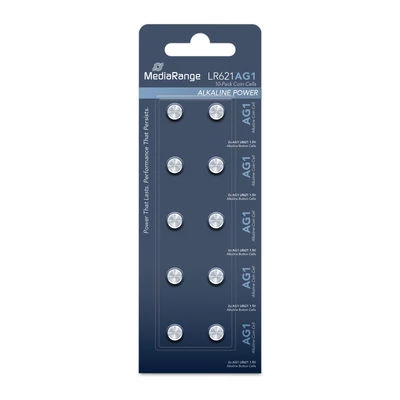 A MediaRange Premium alkáli gombelem készlet ideális megoldást kínál a kis méretű elektronikus eszközök megbízható energiaellátásához. A csomag 10 darab AG1/LR621 típusú, 1,5V-os gombelemből áll, amelyek a legújabb alkáli technológiával készültek.