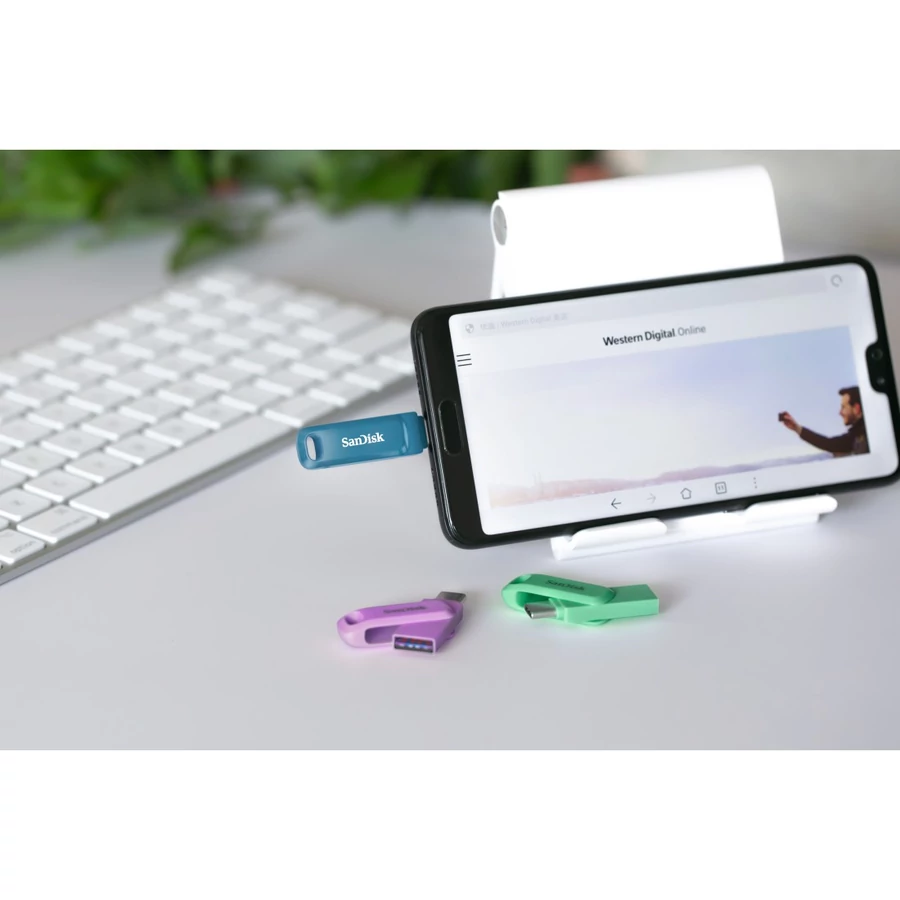 A SanDisk Ultra Dual Drive Go pendrive innovatív kialakításának köszönhetően egyszerre kínál USB-A és USB-C csatlakozási lehetőséget, így tökéletes választás számítógépek, laptopok, tabletek és okostelefonok közötti adatátvitelhez. A forgatható védőborítás praktikus védelmet nyújt a csatlakozóknak, miközben nincs szükség külön kupakra.